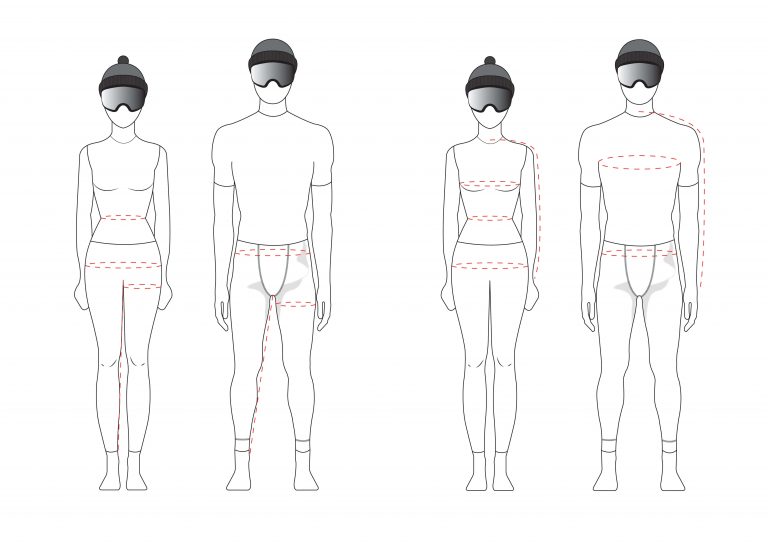 You can find below our range of sizing charts on which our garments are based. These are designed to give you an idea of the fit of our items - but please note that some items are designed to be a tighter or looser fit than others (for example, a technical mountain-expedition jacket will be designed looser to fit required padded layering underneath) - so we give extra fit guidance on the individual product pages, as if the item is designed with extra space but you're not planning on layering, you may want to get a smaller size than normal!