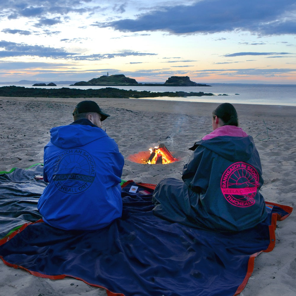 A versatile waterproof blanket designed to wrap snugly around your shoulders. It conveniently folds into itself to carry, and can be snapped together to create a cosy cocoon for those campfire gatherings.