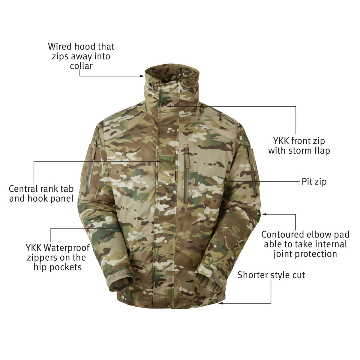 Providing a fully IRR insulated and waterproof outer garment with additional reduced thermal signature due to our unique SDP system this jacket is insulated with a 133gsm PrimaLoft Gold fill and our soft touch matrix inner lining.